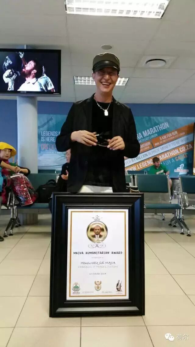 吉克:这个奖设得比较高,包括曼德拉,以及很多国家的一些总统、国王等国际名人都参与获得过这个奖。那吉狄马加先生可以说是我的老师,在很早以前我的汉语部分的作词就受到他的很多诗歌影响,因为他用汉语描绘自己的家乡,描绘关于彝族的信仰、村庄、部落,实质上都是很准确的。原来计划是他自己要去,顺便也带我出去玩的,但是后来有诸多的原因,他就不能去了。这样以后,估计他也想了一下谁能够有资格代他去南非领这个奖项。一个我觉得我不是政治家,也不是什么专家学者,我就是个音乐人。还有一个可能他考虑到我对自己的故乡和母族文化的热爱,或者直接说是因为我的信仰。到了南非以后,人家介绍我也是这样的,首先这位先生是一位民族宗教人士,其次才是一名歌手。