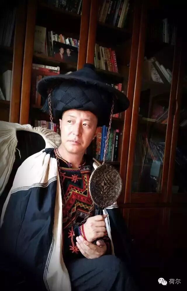 穿上彝族文化仪式主持者“毕摩”服饰的老鹰