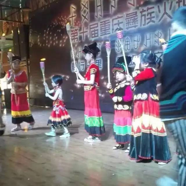 第一,迎火仪式。经过前几年的探索,这次组委会采用了安全、美观的新型火把,并在舞台中央设置了取火盆,破解了在城市过火把节无法点火把、玩火把的难题,更加欣慰的是迎火手都是生在重庆、长在重庆的彝族及其他同乡的孩子,这些彝族同胞的“彝二代”本来很少到凉山等彝族地区参加过火把节,他们对火把节的概念更多的是来自父辈的故事和网络等其他资料,这次重庆火把节让孩子们穿着彝族服饰高举火把当迎火手,在孩子们天真的脸上展现出了点火把、玩火把的那份神秘和快乐,对孩子们来说这是一次彝族传统文化、火把文化的洗礼和熏陶,我们看到了彝人的这团圣火已经在这些孩子的心中萌芽。十年二十年后,相信这些孩子将是重庆传承和发扬彝族文化的主力军。