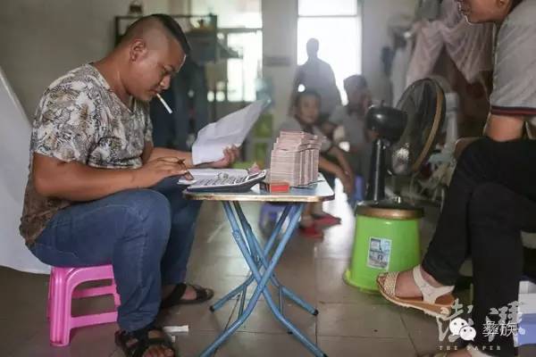 8月19日,马海木呷劳务公司的另一位合伙工头沈三留子,正在给工人发工资。彝族工人很少使用银行卡,工资通常直接以现金的形式发放。