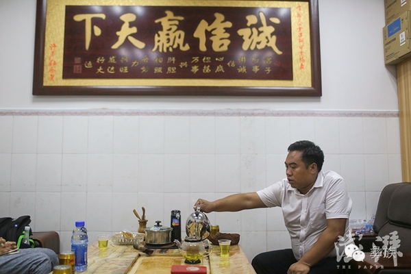8月14日,马海木呷坐在自己新开的劳务派遣公司的办公室会客,墙上挂着“诚信赢天下”的匾额。