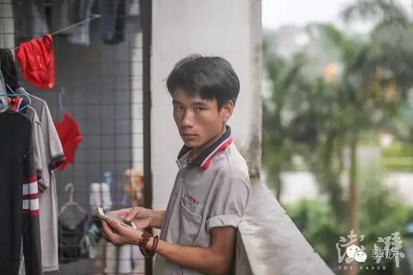 2016年8月15日,广东东莞凤岗镇,彝族打工青年阿海里哈在宿舍里。 本文图片 澎湃新闻见习记者 谢匡时