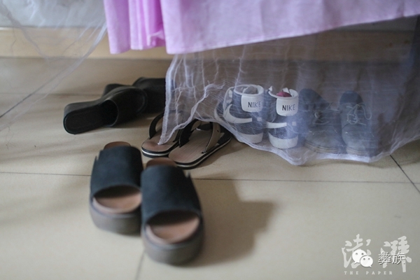 8月19日,阿比的宿舍内。阿比床底下花600元购买的耐克鞋,是她为数不多的“奢侈品”。阿比说,“为了买这双鞋,我要辛苦工作一个礼拜。”