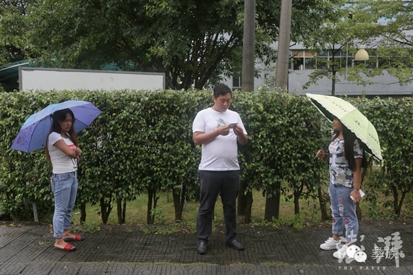 8月16日,东莞沙马伍合在工厂门口简单面试两位佤族工人,主要是看她们的身份证、年龄等基本信息,没有太大问题都能带进厂。
