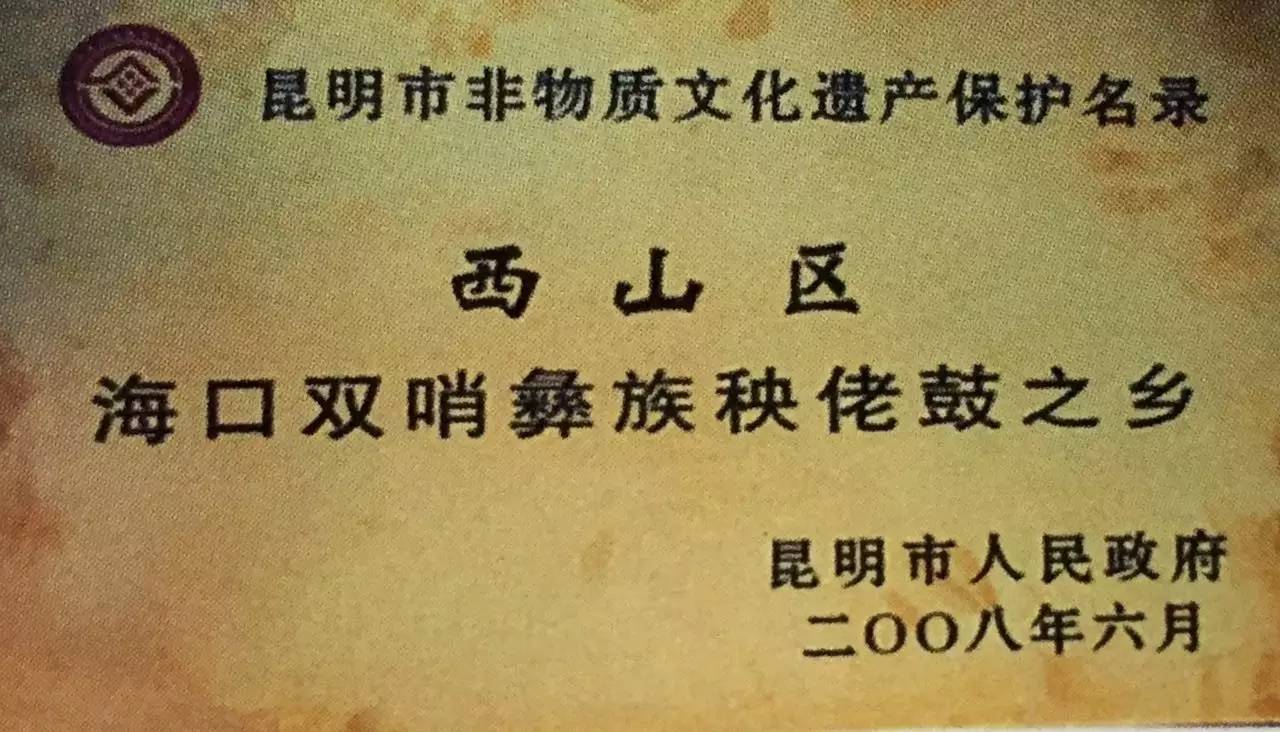 昆明市西山区海口双哨彝族“秧佬鼓舞”于2005年先后由西山区人民政府、昆明市人民政府公布为西山区第一批民族民间传统文化保护项目和昆明市第一批民族民间文化保护名录项目;2008年6月,昆明市人民政府又授予双哨彝族村寨“海口双哨彝族秧佬鼓舞之乡”称号。