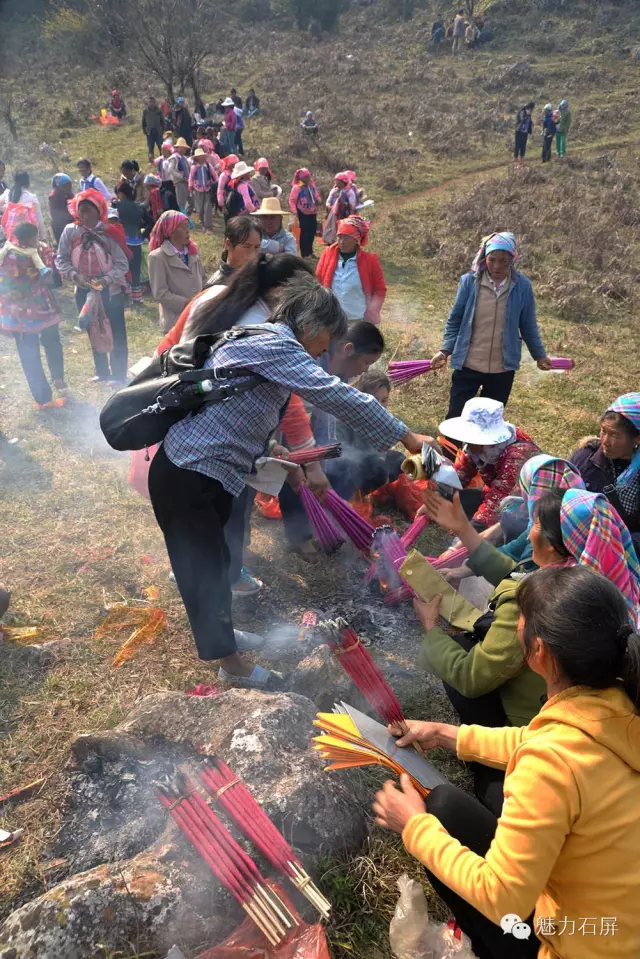 每年的农历二月初九,对于居住在石屏县南部大冷山山麓的三租邑、尼腊、弥勒等彝族村寨的村民来说,是一个特别的日子。当日,村民们会不约而同的聚集到大冷山山顶一处地势较为平坦、当地村民尊称为“九龙山”的地方“赶庙会”,敬香许愿,歌舞娱乐,享受美食。