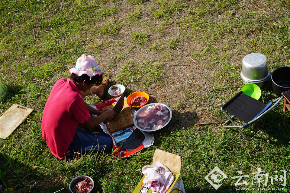 祭龙仪式结束后,村民开始分领此前宰杀并煮熟的猪肉、羊肉,在长湖岸边埋锅做饭,与家人朋友分享祭祀美味,度过一个特殊而有意义的节日。