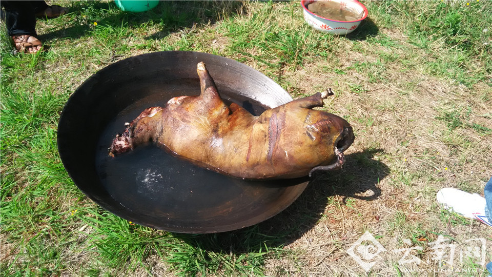 杀猪宰牛,生火架锅,为祭龙作准备。