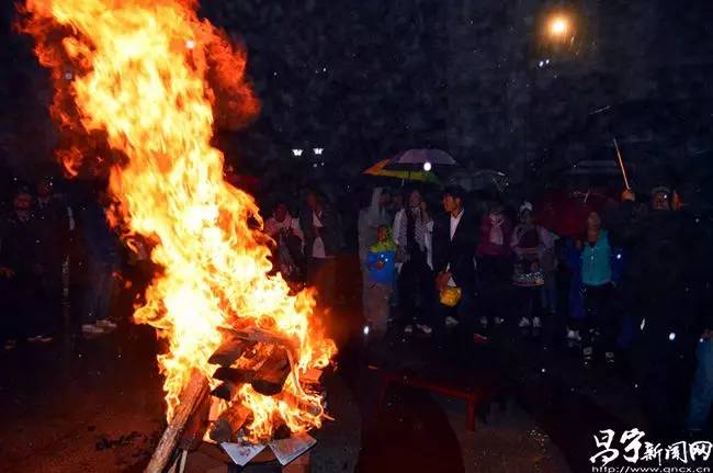晚上8点,在打歌比赛颁奖仪式结束后,民族文化广场上点亮了象征幸福吉祥的火把,虽然大雨倾盆,但现场群众热情不减,节日的氛围也随着火把的燃烧而愈发浓厚。大家还在雨中燃起了熊熊篝火,围火打歌,用彝语唱响共产党好、社会主义好、各族人民好的时代主旋律。