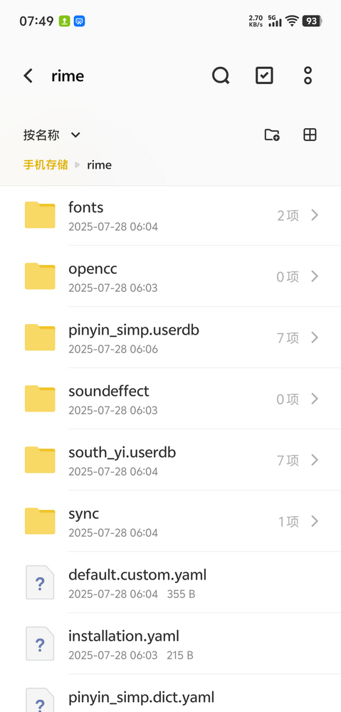 2.把滇南古彝文定制包下载、解压并把文件复制到你手机的rime文件夹下。