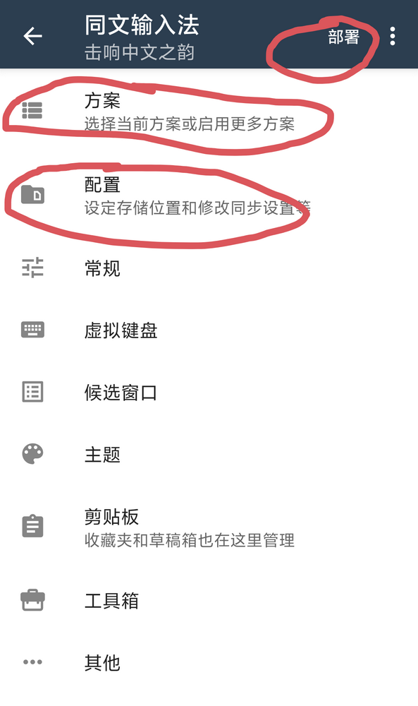 点击上图中的“启用方案”。同时,记得把手机系统的默认输入法调整为同文输入法(调整方法通常为手机——设置——系统管理——输入法——默认输入法,选择同文输入法)。
