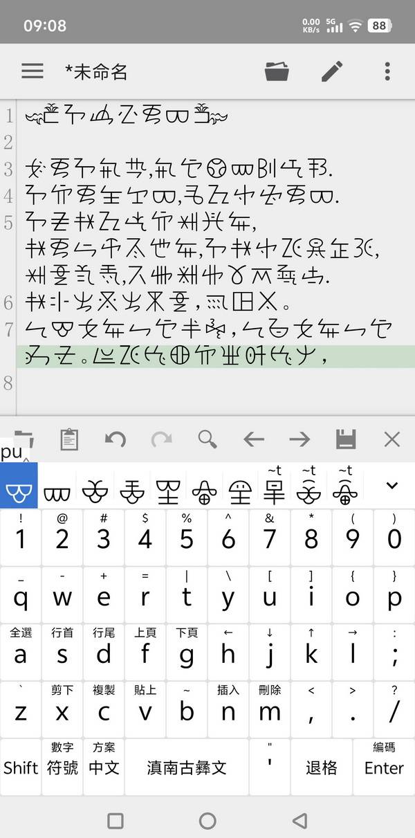 有了以上这些能兼容滇南古彝文字体的手机文本编辑app的支持,我们就可以在日常生活中随时随地地录入和使用滇南古彝文了。