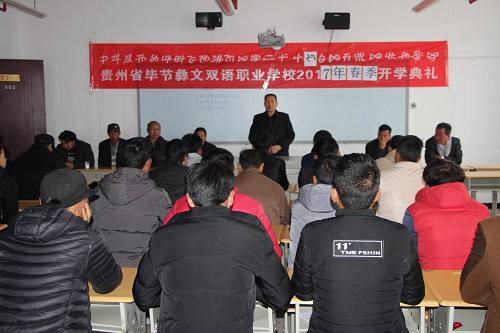 2017年2月27日农历二月初二龙抬头日,贵州省毕节彝文双语职业学校全体师生在我校16级教室举行春季开学典礼,校长禄绍康发表开学致辞,副校长王定林主持开学典礼。