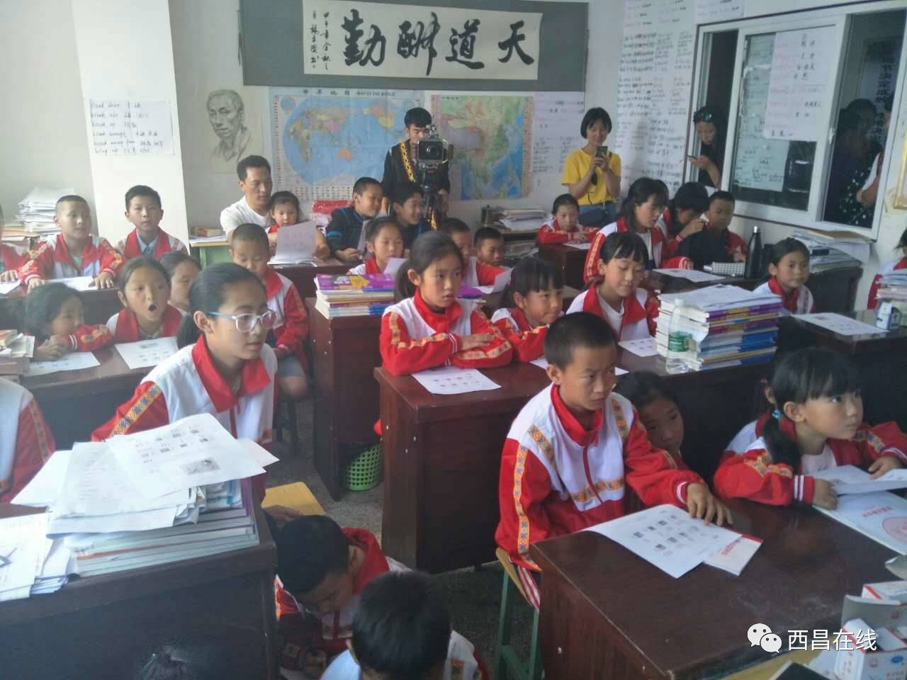 教师团队、西昌学院的志愿者和英子的合影。