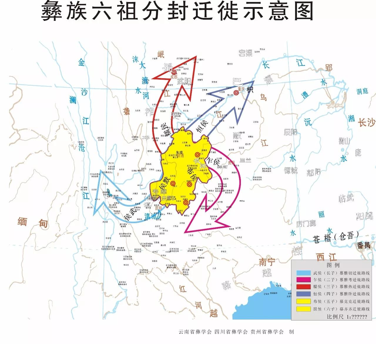 (彝族六祖分封迁徙示意图)