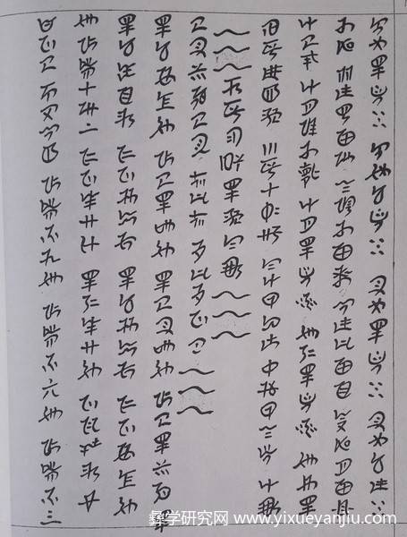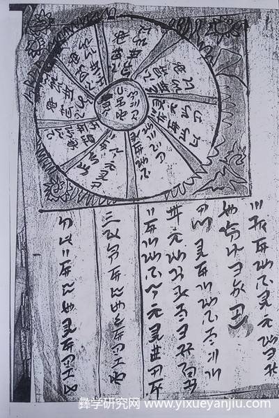 曲靖市彝学会收集到的彝文古籍内容展示。右图为古代彝族八卦历算知识。