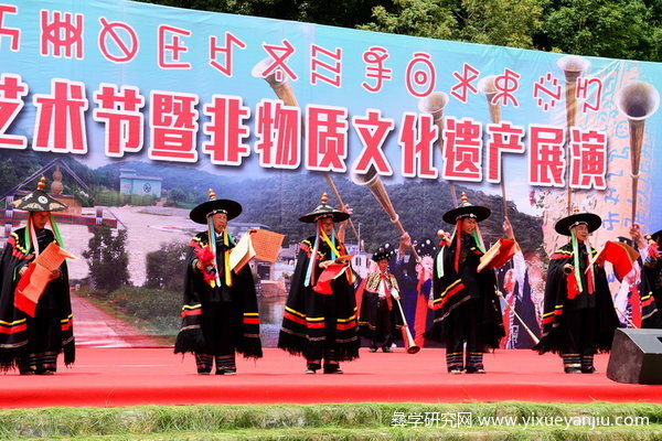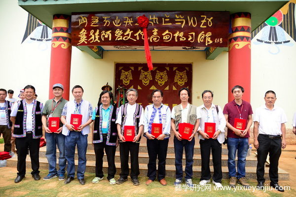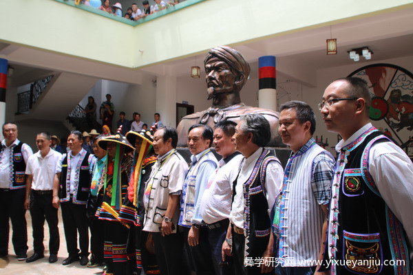 8月9日阳关灿烂,青山环抱的彝族阿哲家乡高甸沉浸在歌声与音乐的熏陶中。上午9点开始,迎宾门周围列队站满了迎接宾客的美女帅哥,随着几声嘹亮过山号,一队队宾客,在阿哲迎宾歌曲的节奏中,盛装穿过青松散发出芳香的绿色通道。下午13点30分在传习馆举行了“彝族阿哲文化高甸传习馆”开馆揭幕仪式、“传习馆特聘专家、研究员证书颁发仪式”、“彝族人文始祖阿普笃慕栗”铜像揭幕仪式等内容。下午14点开始在中心点缀着彝族太极图的爱佐与爱莎文化广场举行民俗歌舞展演。