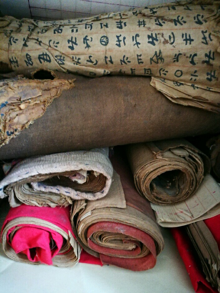下龙武街子走朝北边的路,转了几道下坡的弯就到了大连庄,李财旺毕摩在寨门口等着我们了。我们一行人冒着浓雾和雨水,顺着大连河进入到峨山县城。下午5点多,到达民族局办公室,与他们一起交换材料,又留下一些我们认为可以留下的材料。