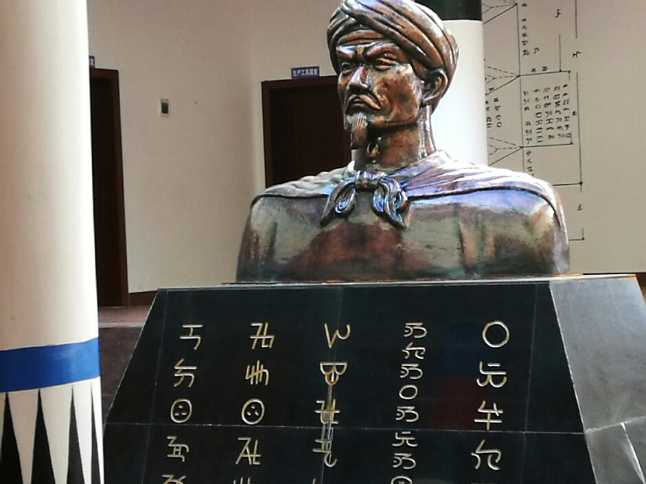 红河州弥勒市高甸彝族阿哲文化传习馆内竖立的彝族人文始祖阿普笃慕的半身像