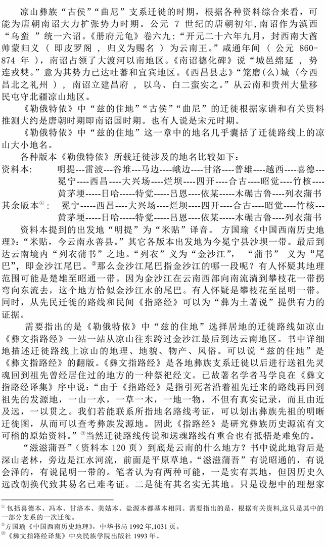 彝文文献《勒俄特依》是大小凉山彝族地区家喻户晓的创世史诗。以往对《勒俄特依》译注中出现不少错误。特别是涉及书中一些很有价值的远古史迹和一些词语及地名。本文从历史学、民族学、语言学角度及彝族历史文化情况对《勒俄特依》溯本清源、匡正讹误。