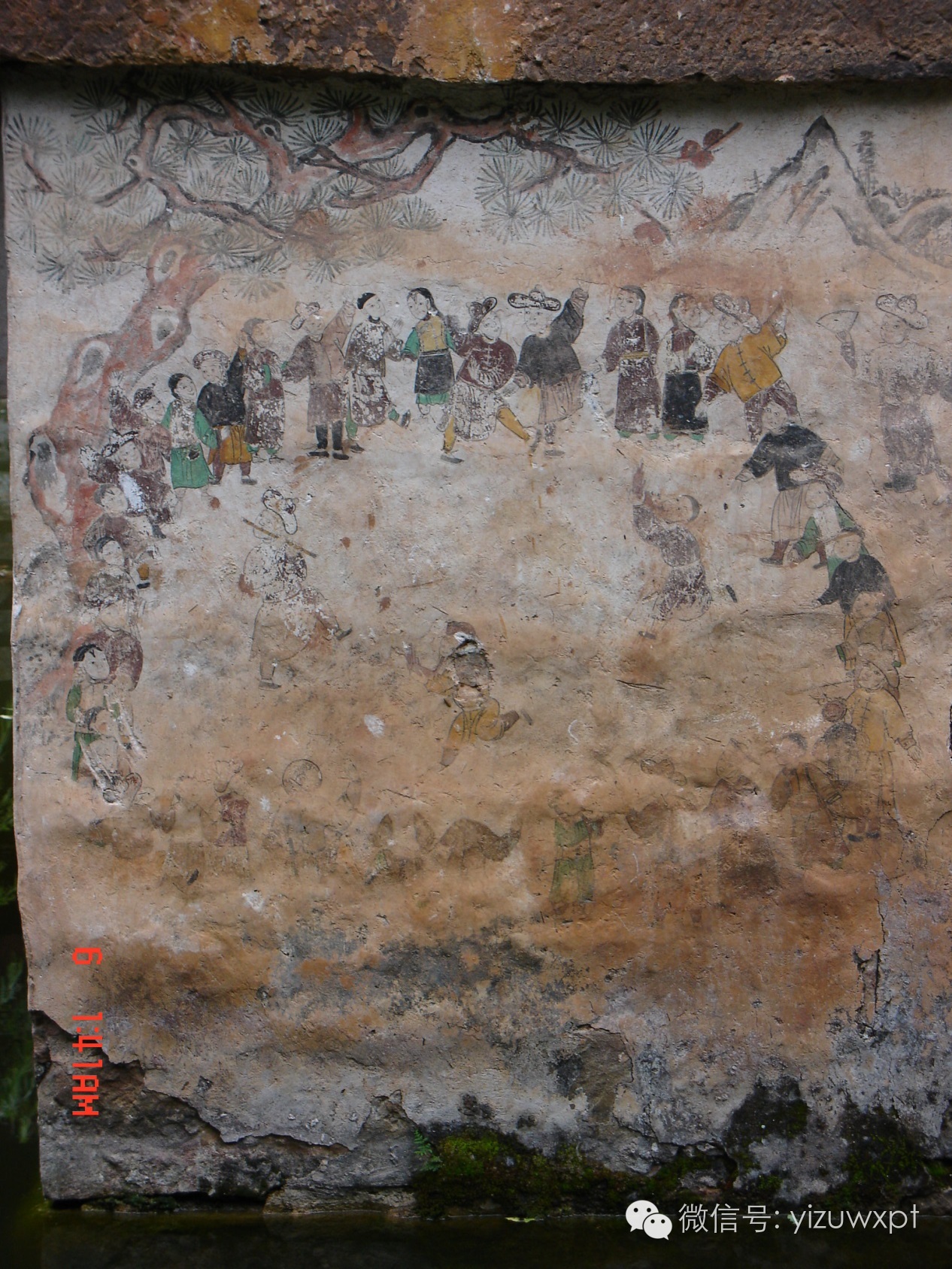 公元1759年(清朝)绘于巍宝山文昌宫内的文龙亭桥墩上的《松下踏歌图》,是云南至今发现较早的彝族打歌壁画,至今,巍山彝族的打歌还保留着壁画中的许多原始舞蹈活动的元素,打歌的一些动作如提腿、跺脚、扬手、环舞和用芦笙、笛子和三弦伴奏等。