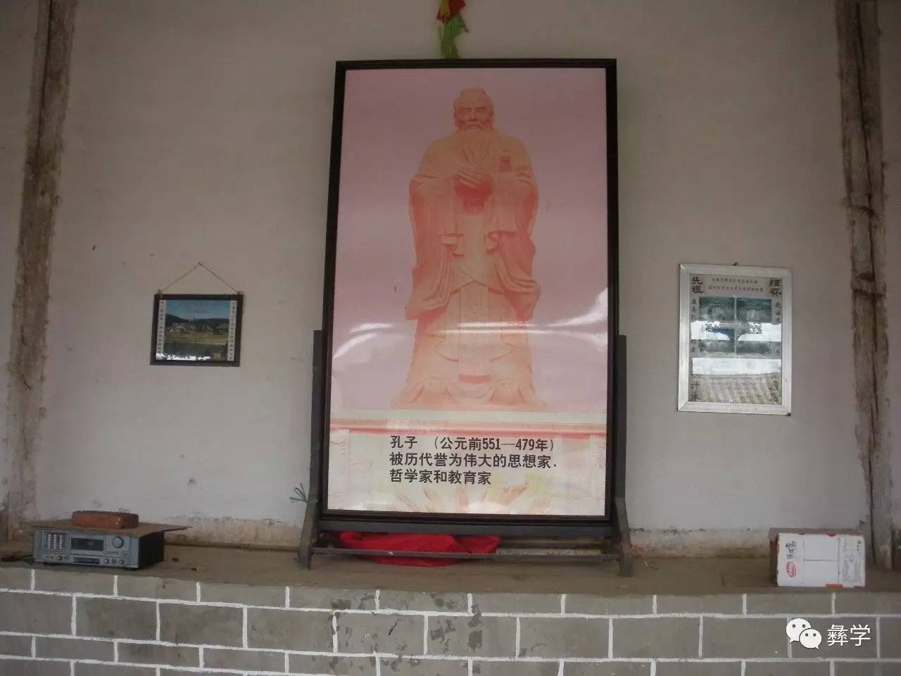(石屏县坝心镇大湾子村孔氏家庙正殿的孔子圣象)
