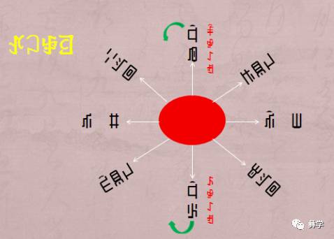 “ꀋꃀꒆꄡ”汉译为“命宫”,“ꑞꅉ”汉译为“方位”。根据母亲生孩子时命宫所在的方位为子女命名,是凉山彝族人命名的主要方式之一,这种命名方式彝语称“ꀋꃀꒆꄡꑞꅉꉜꄿꂒꋉ”。命宫按照一定的规律运动,每年一个方位,即东、南、西、北、东南、西北、东北、西南八个方位。其中,男性的命宫以南方为起点,顺时针方向运动,一岁在南方,两岁在西南方,三岁在西方,四岁在西北方,五岁在北方,六岁在东北方,七岁在东方,八岁在东南方,九岁又回到起点南方;女性的命宫以北方为起点,逆时针方向运动,一岁在北方,两岁在西北方,三岁在西方,四岁在西南方,五岁在南方,六岁在东南方,七岁在东方,八岁在东北方,九岁又回到起点北方。以此类推,命宫每年运行一个方位,一轮八个方位共计八年。男性的命宫方位一岁、九岁、十七岁、二十五岁、三十三岁、四十一岁、四十九岁、五十七岁、六十五岁、七十三岁、八十一岁、八十九岁、九十七岁都在南方;女性的命宫方位一岁、九岁、十七岁、二十五岁、三十三岁、四十一岁、四十九岁、五十七岁、六十五岁、七十三岁、八十一岁、八十九岁、九十七岁都在北方。