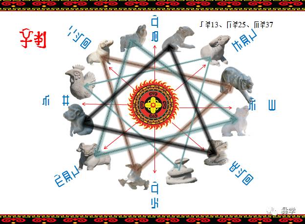万事万物相生相克,以强克强,以弱克弱。凉山彝族人认为命宫方位在东南方的生命力最强,由强至弱依次为 ꇐꄸꉻ(东南)、ꈌꄸꉻ(西北)、ꑛꌋꈤ(东北)、 ꒈꀑ(北)或 ꒈꂪ(南)。其中,ꒈꀑꆏꅩꒆꋍꈓ,译为生男之年命宫在南方,以顺时针方向运行;ꒈꂪꆏꌺꒆꋍꈓ,译为生女之年命宫在北方,以逆时针方向运行。如某母亲生男孩的命宫方位在北,男孩生命力强;生女孩在南,女孩生命力强。因此,凉山彝族人在算婚配时,以命宫方位相生相克择婚,如东南和西北、东北相配,西北和南,东南和北相配。如有以强克弱或以弱克强情况,在结婚之前,需要请毕摩做法举行仪式,将女儿嫁给山川、河流,以防克夫。