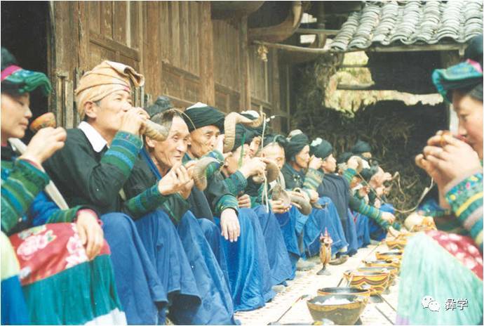 下面看下民间仪式宴席,比如有客人到来,两个人一桌,对着一起吃很大的坨坨肉。现在当地有个餐厅出现,叫“彝家寨”,餐厅里有筷子、碗,做的菜很精细,但做的菜取的是彝族的名字。传统彝族地区是不用筷子的,喝酒用羊角杯。请看以下的一组照片。