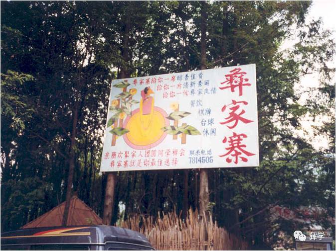 “彝家寨”宣传牌(巫达摄于1999年)