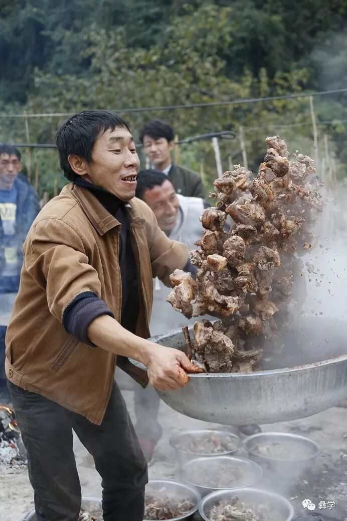 传统的杀牛,煮熟,切块,拌了后给客人吃;传统的杀猪,用热水褪猪毛,再用火漂,用干蕨草烧火,在猪身上洒水,然后用火烧。另外,彝族的经师在念经,念完经之后他要先吃,吃完别人才可以吃,他就是念经驱鬼的,也就是他的地位非常高,即使在经济困难期,他们也有肉吃。