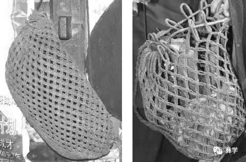 在收藏和传承方面,经籍装帧包裹好后,一般装入木质或竹质的箱、柜之中(见图10),放在楼上或台上等比较干燥、僻静、安全的地方,以防潮湿、虫蛀和鼠咬。需要使用时才将经籍从箱、柜中取出,装于布袋(“帙”的痕迹)或用麻绳编制的网兜(见图11)中随身携带,到使用场所时将其挂于墙上或柱子上,一般不得轻易将书直接放于地上。老毕摩去世后,其留下的经籍如果还可以使用,就由其子孙中当了毕摩的后生继承,等用到不能再用的时候,再重新抄存。新书抄好后,旧书不能轻易丢弃,必须要通过严格的宗教仪式一点不留地送往深山老林或岩洞之中,从此不得轻易去触动。如果书主绝嗣,且没有徒弟或旁系亲属继承他的经籍,也要通过严格的宗教仪式将其经籍一点不留地送入深山或岩洞,绝不能随意抛弃。有些特别的经籍如用血写成的咒经,平时不能放在家里,而要放在秘密的场所,到必需的时候才去取来使用,用完后又放回原处。个别经籍如《间隔经》、《防同食经》等则是由毕摩写好后赐予仪式主人家的,主人有时会将其翻开挂在屋内的隔板或柱子上。有的小经籍如《防矛防箭经》、《防风湿经》等则是由毕摩写好后赐予凡人的“护身符”,需要将其卷成细柱或叠成小方块,用布包裹好后缝缀在衣领或衣角上,或直接缝入衣领或衣角中随身穿戴。有的经籍如《防癞经》则装入特制的木筒之中单独存放。木筒的制作方法是:比照经籍卷轴的大小,取粗细、长短合适的木姜树干一截,在两头间合适处平行下刀至三分之一左右的深度,破开中间部分,再按照剜槽的方法将其剜成槽,破下的部分也剜成槽作为盖子,做好后,将书卷放入槽中,盖上盖槽,再用拴在木筒一边的麻绳缠缚。有的书筒还会在木筒上雕上龙(见图12)。采用木姜树的原因,据毕摩们说是因为木姜可以防癞病。这是彝族经籍收藏方法中非常独特的一种形式,由于木姜有药性,能防虫,客观上对经籍的保护有很好的作用。