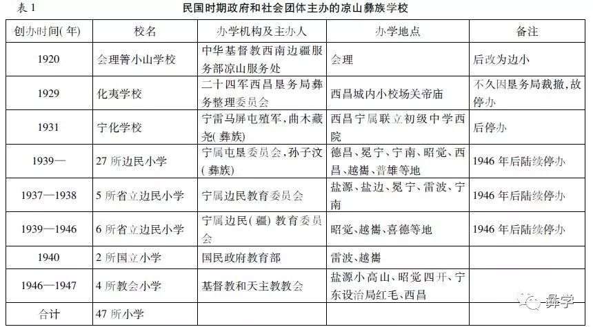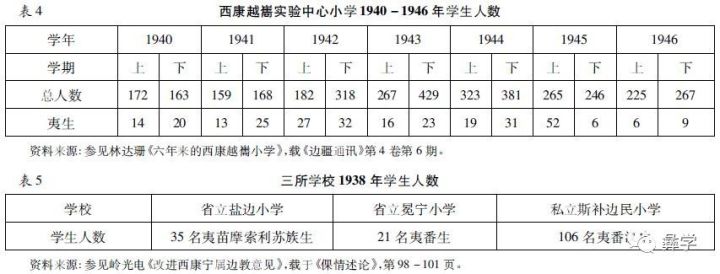 省立冕宁小学、盐边小学均为办学较为成功的边民学校,但彝族生加上其他少数民族学生,算在一起也不过二三十名。岭光电创办的斯补小学是当时最为成功的边民学校,1938年学生总人数只有106名,其中还含有部分藏族、汉族学生。表1、表2所列的大部分边民小学,办学情况远远不如上述3所学校,且多数停办,当时这些学校招收彝族学生也是屈指可数的。