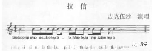 1.音程的高低、节奏的长短分别与语音的清浊、紧松对应。低音—浊音—松弛,高音—清音—紧张的方式形成音高系统中对应;紧音—短音,松音—长音的方式形成节奏系统的对应。下例《拉信》框中的部分即是语言的紧、松对应节奏的短、长。