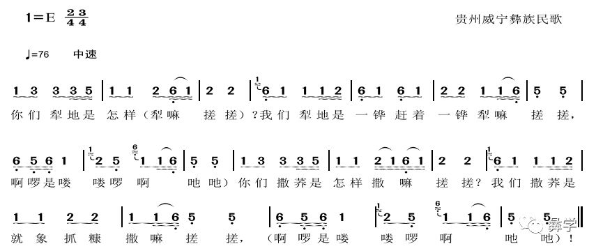 以下三首歌曲是贵州彝族人民的劳作歌曲(图8-10):