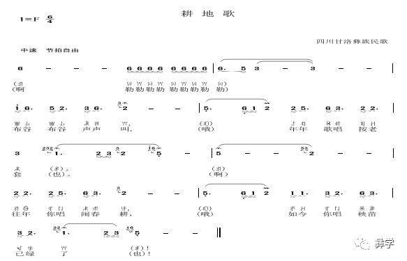 流传于四川甘洛县的《耕地歌》节奏自由,生动活泼,描述了犁地者愉快的心情和对来年丰收的憧憬。