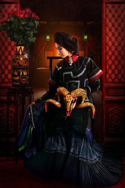拍摄民族风时尚照片的想法,源于偶然。工作室刚成立时,丫丫的一位发小正在筹备婚礼,需要拍摄一组婚纱照,找到她后,几人一商量,决定新人不穿婚纱西服,而穿彝族传统服饰。