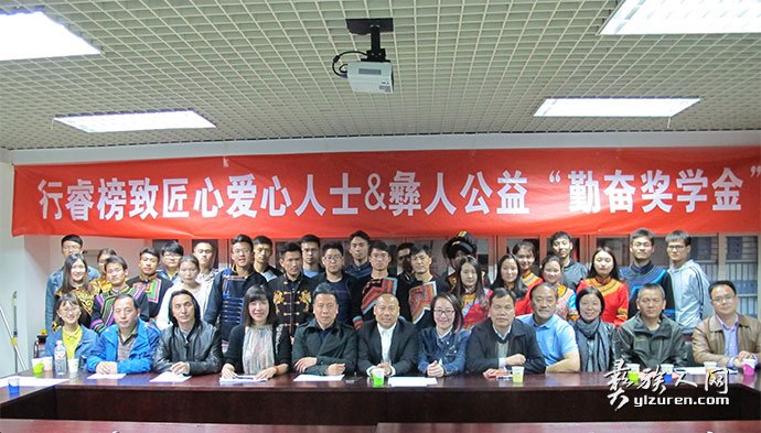 2016年4月7日晚7点,彝人公益2015年度“勤奋奖学金”(北京)发放仪式在中央民族大学文华楼成功举行。中央民族大学少数民族语言文学系党委书记刘正发,行睿杂志主编妮娜,北京逸丝风尚创始人张军,北京优美加投资管理公司董事长李磊,付军剪艺创始人付军以及毛旭,许科,阿朵,刘小丰,米佳琪,普忠良,毛发虎,黄平山等社会各界人士出席了本次颁奖仪式。