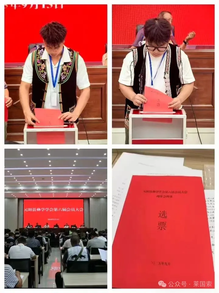 2025年9月13日下午14点30分,元阳县彝学学会第六届会员大会在元阳会堂隆重召开。红河学院人文学院中国少数民族语言文学专业(简称少语专业)自媒体工作坊旗下“莱国索”公众号主编孔令永和“云岭彝风”公众号主编普文,作为青年学生代表应邀出席,展开了一场融合学习与交流的文化之行。